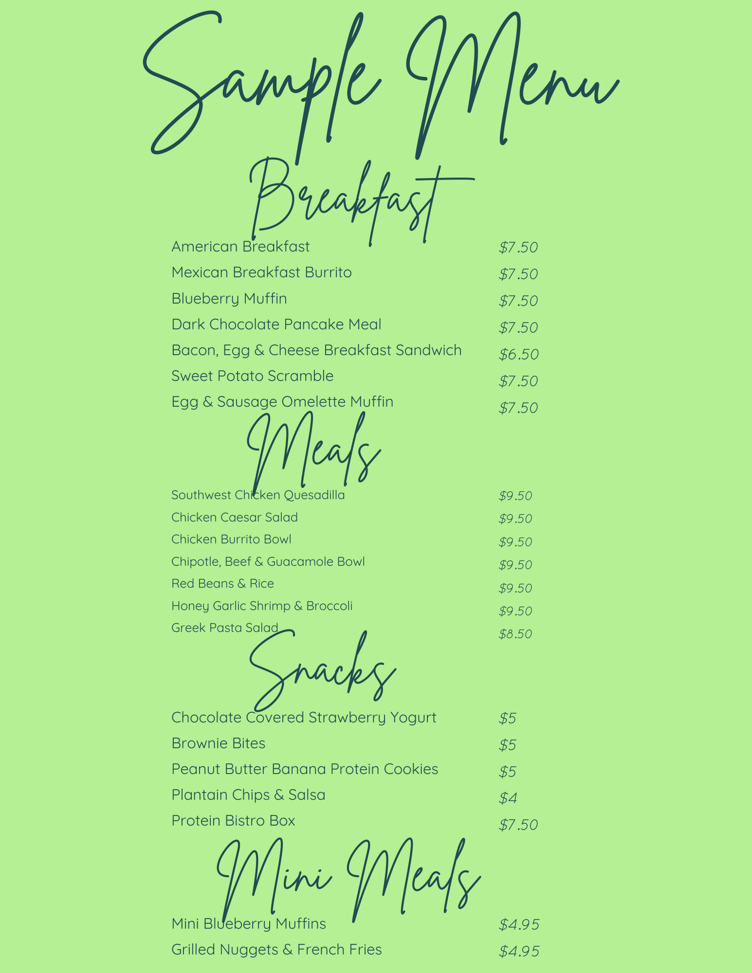 Step 1: New menu every Friday at 8am. Place your order between Friday-Monday. All orders are due Monday by 11:59pm.