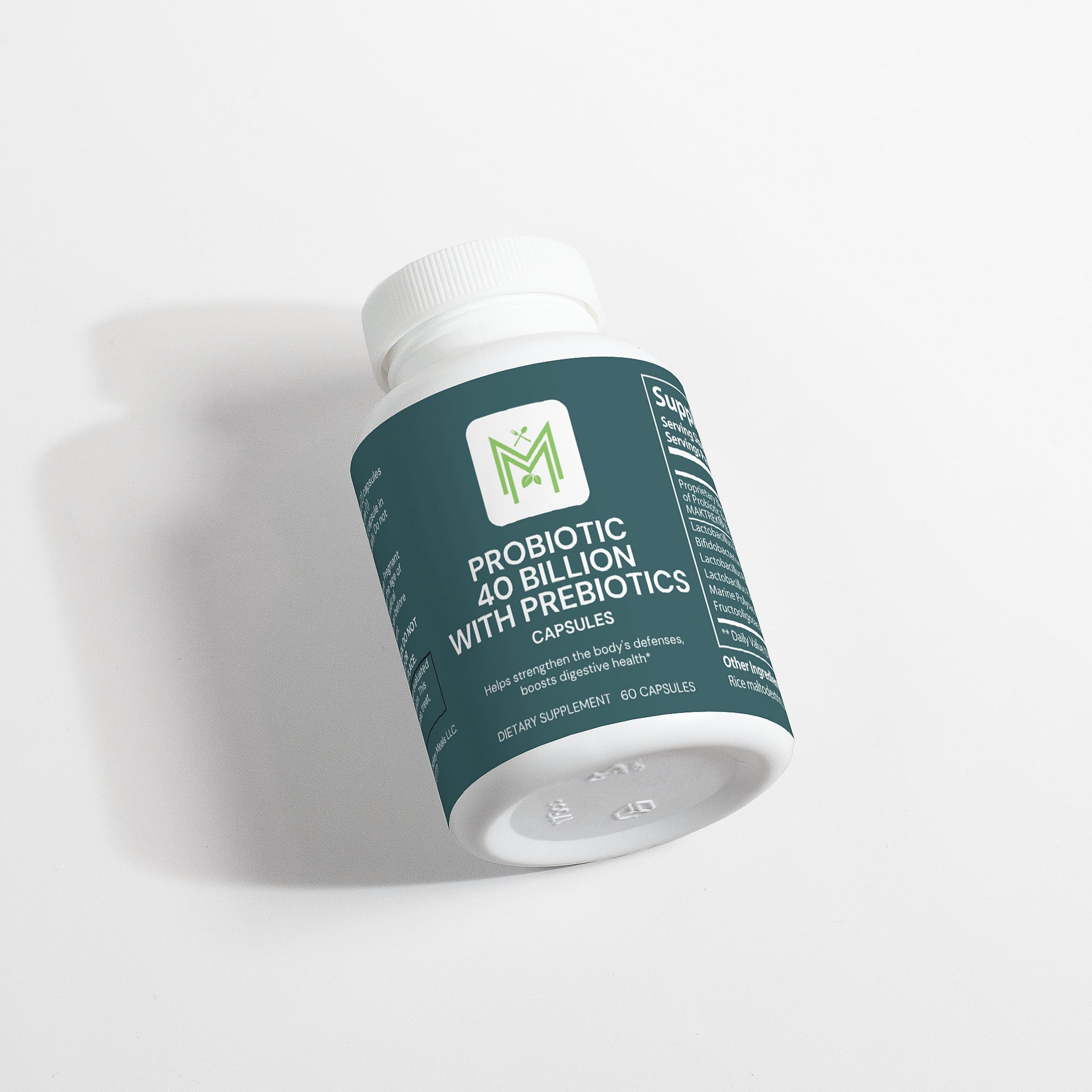 Probiotic 40 Billion with Prebiotics is a blend of four probiotic strains: Lactobacillus Acidophilus, Bifidobacterium Lactis, Lactobacillus Plantarum, and Lactobacillus Paracasei.